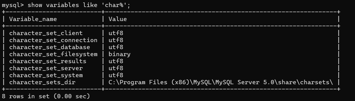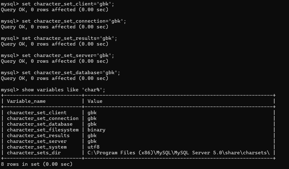 网上基本上就是这种了,然后将mysql设置成utf8后,插入中文都显示失败了,但是在navicat和idea插入并没有问题,就是会显示乱码。