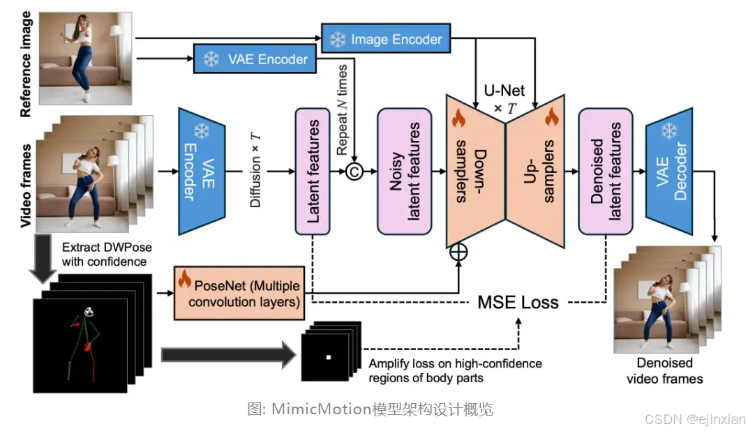 最后,通过结合扩散过程的渐进式潜在特征融合策略,MimicMotion 能够在有限的算力资源内生成无限长的视频同时保证画面连贯。