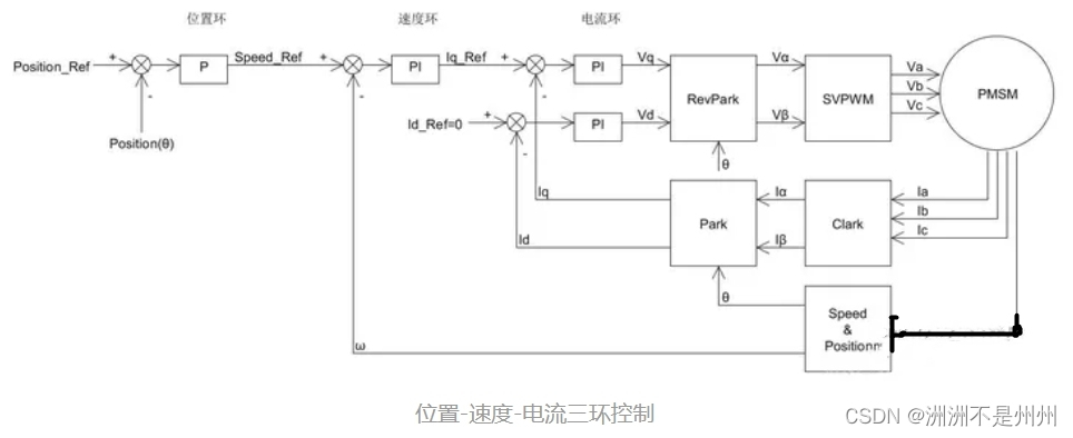 在FOC控制中主要用到三个PID环,从内环到外环依次是:电流环、速度环、位置环。