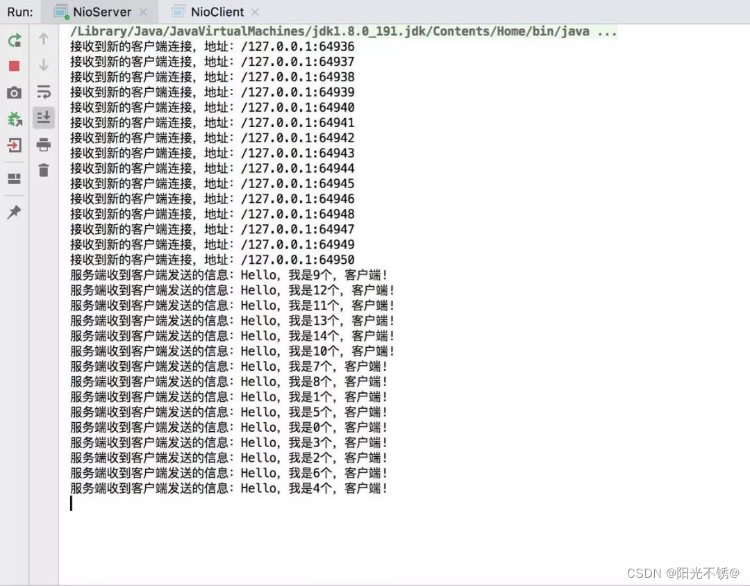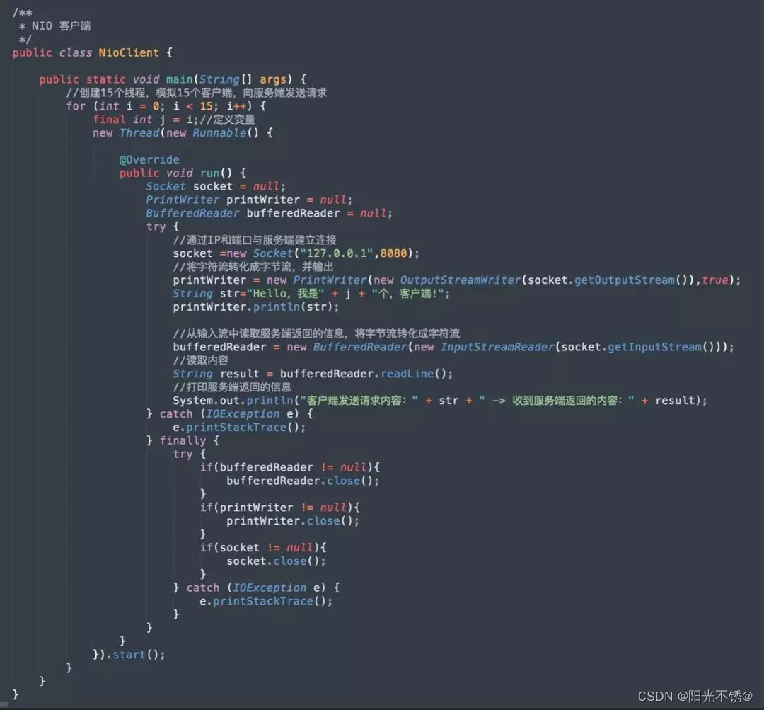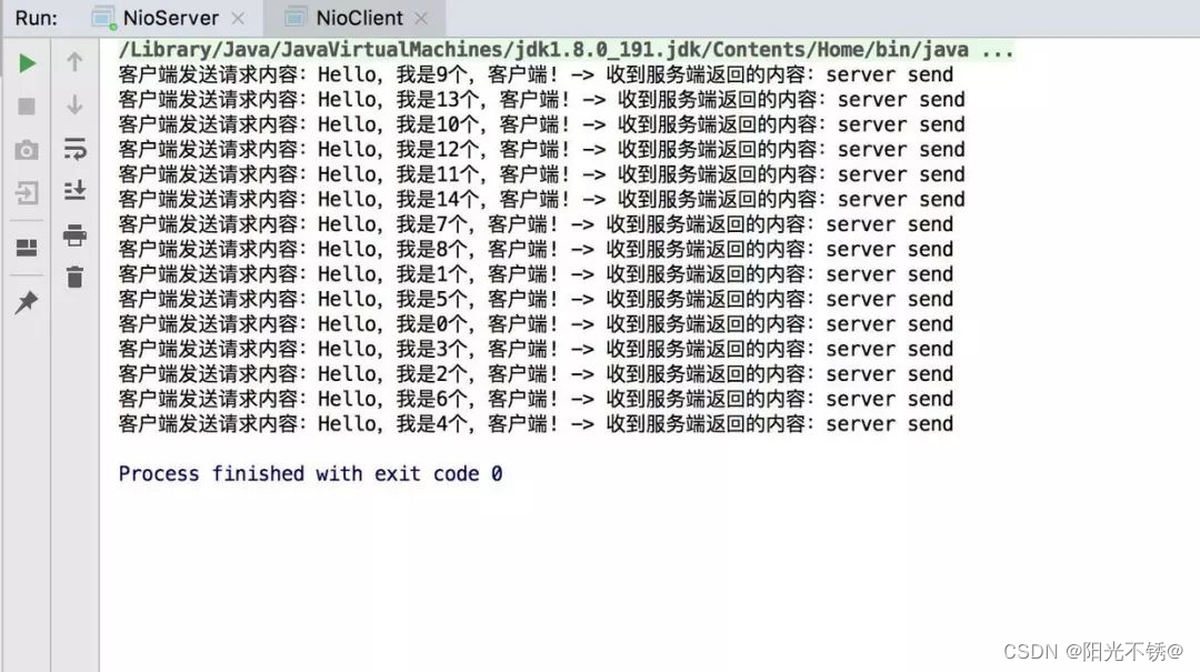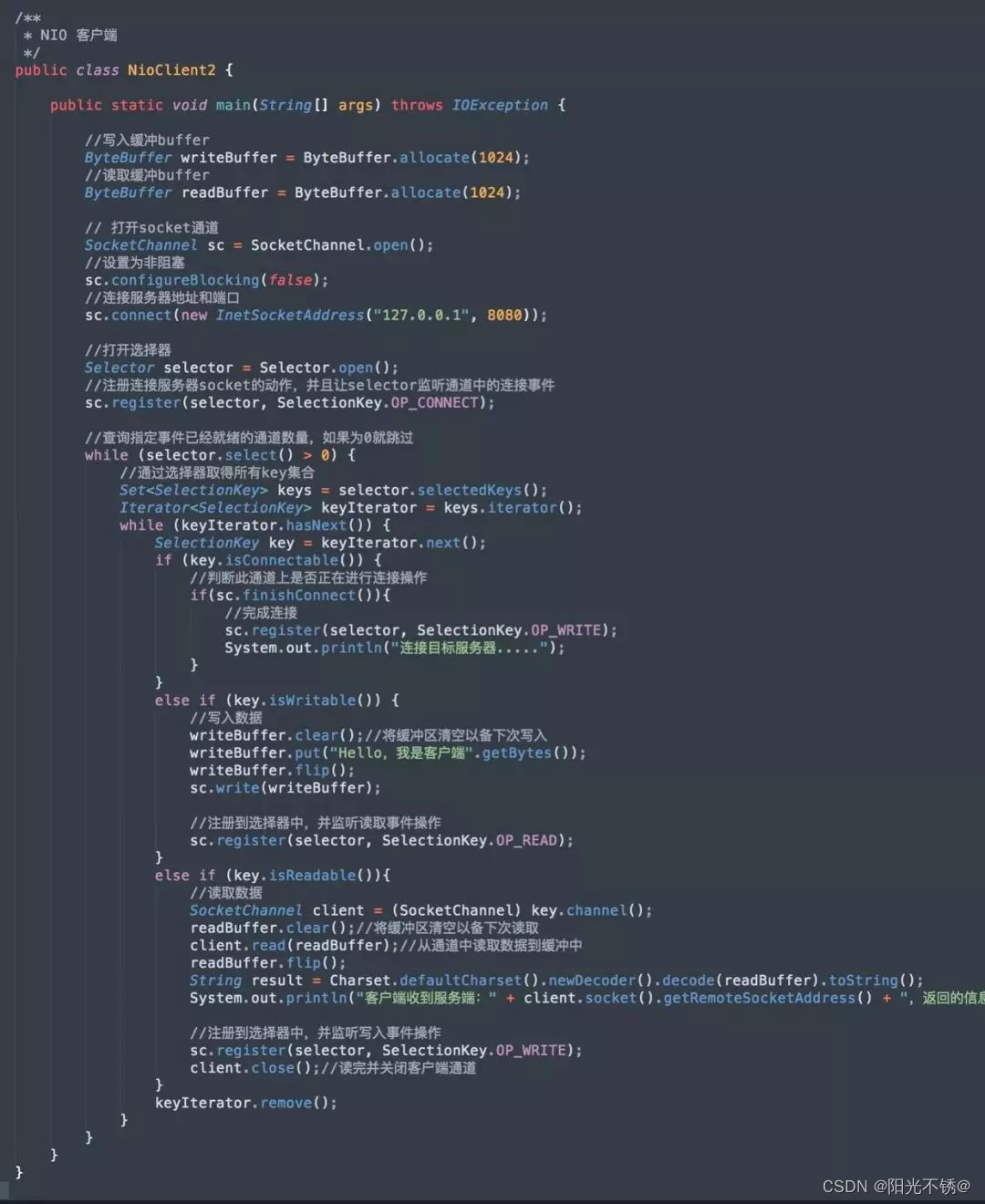 当然,客户端也不仅仅只限制于 IO 的写法,还可以使用SocketChannel来操作客户端,程序如下: