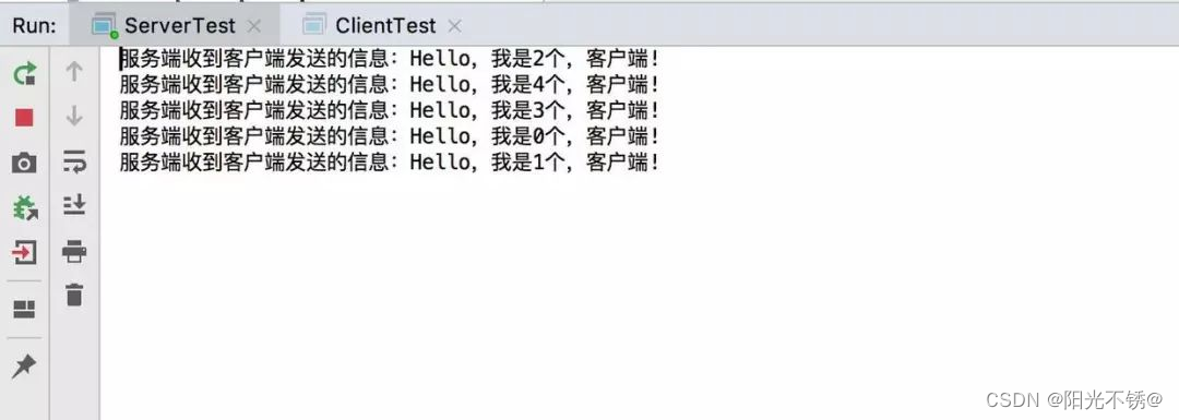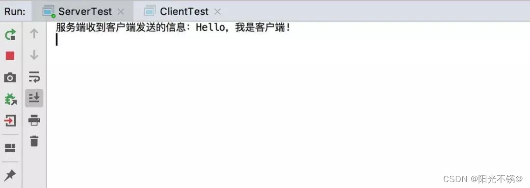 我们先启动服务端程序,再运行客户端,服务端收到客户端发送的信息,服务端打印结果如下: