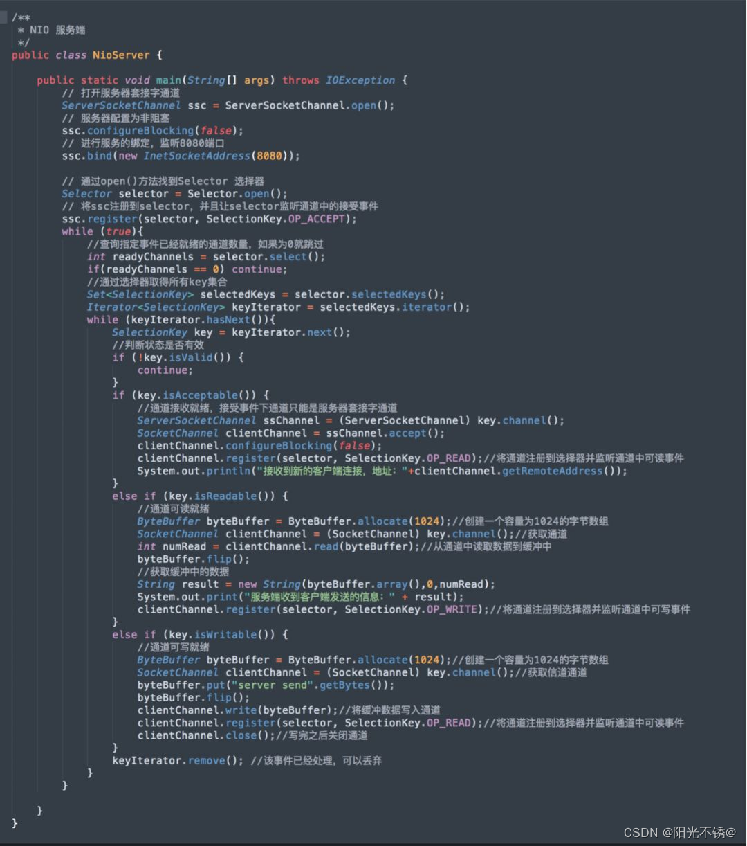 从操作上可以看到,NIO 的操作比传统的 IO 操作要复杂的多!