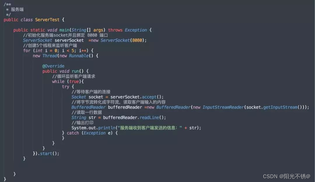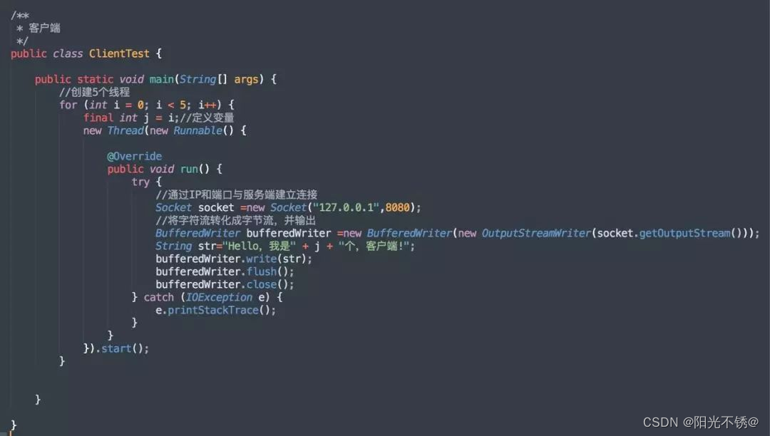 我们一般在服务端通过while(true)循环中会调用accept()方法等待监听客户端的连接,一旦接收到一个连接请求,就可以建立通信套接字进行读写操作,此时不能再接收其他客户端连接请求,只能等待同当前连接的客户端的操作执行完成, 不过可以通过多线程来支持多个客户端的连接。