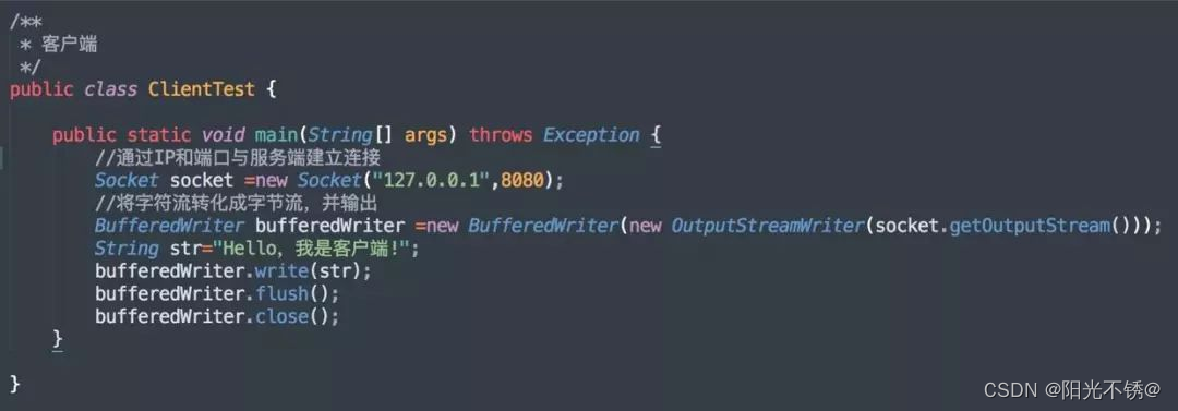 当连接已经建立成功,服务端和客户端都会拥有一个 Socket 实例,每个 Socket 实例都有一个 InputStream 和 OutputStream,正如我们前面所说的,网络 I/O 都是以字节流传输的,Socket 正是通过这两个对象来交换数据。