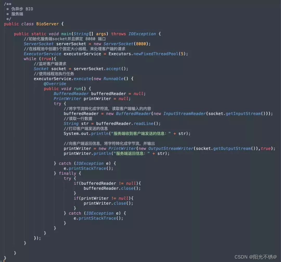 采用 BIO 通信模型的服务端,通常由一个独立的 Acceptor 线程负责监听客户端的连接。