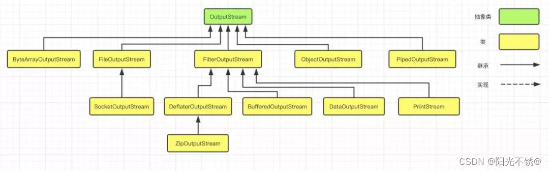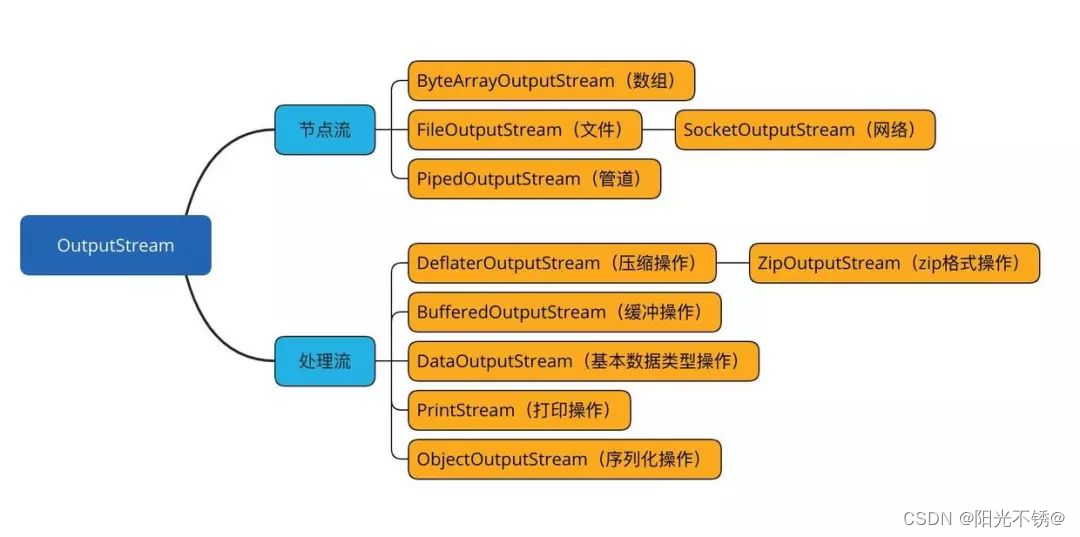 输出流根据数据节点类型和处理方式,也分别可以划分出了若干个子类,如下图: