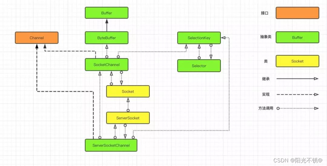 上图中有三个关键类:Channel 、Selector 和 Buffer,它们是 NIO 中的核心概念。