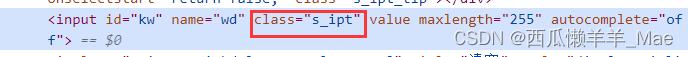 # 创建浏览器对象driver # 定位input标签,需要导入定位选择方式By from selenium.webdriver.common.by import By element_input = driver.find_element(By.TAG_NAME, 'input') 根据元素的类名定位元素,需要注意的是作为定位条件的类名必须是唯一的,否则会定位不到想找的元素,当元素有多个类名时, 选择其中一个唯一的类名来定位。