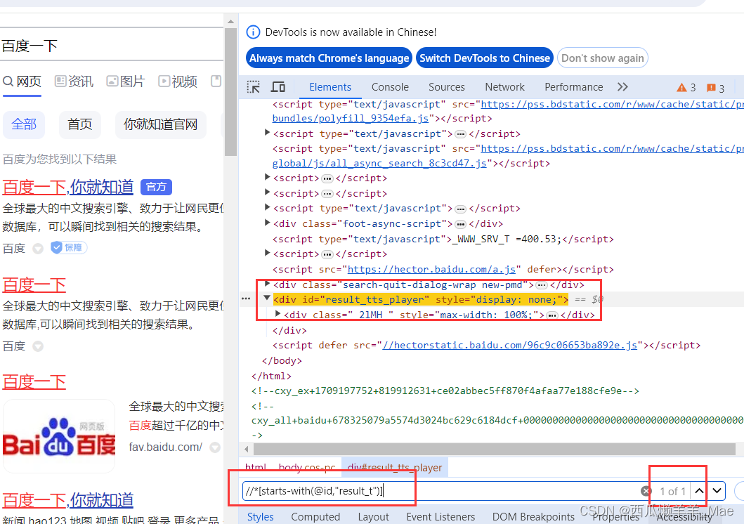# 创建浏览器对象driver # 定位标签中以 "result_t" 开头的标签 element = driver.find_element(By.XPATH, '//*[starts-with(@id,"result_t")]') (6)、//标签名[@ 属性名1=值1 and @ 属性名2=值2]