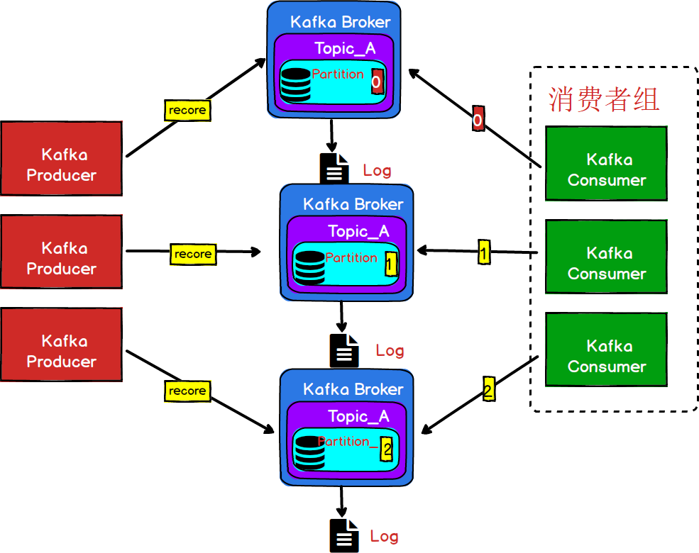 为了解决消费者能够完整的消费同一个Topic下不同分区的数据,Kafka引入了消费者组(Consumer Grop)的概念。保证多个分区的消息能够被同一个消费者组消费。