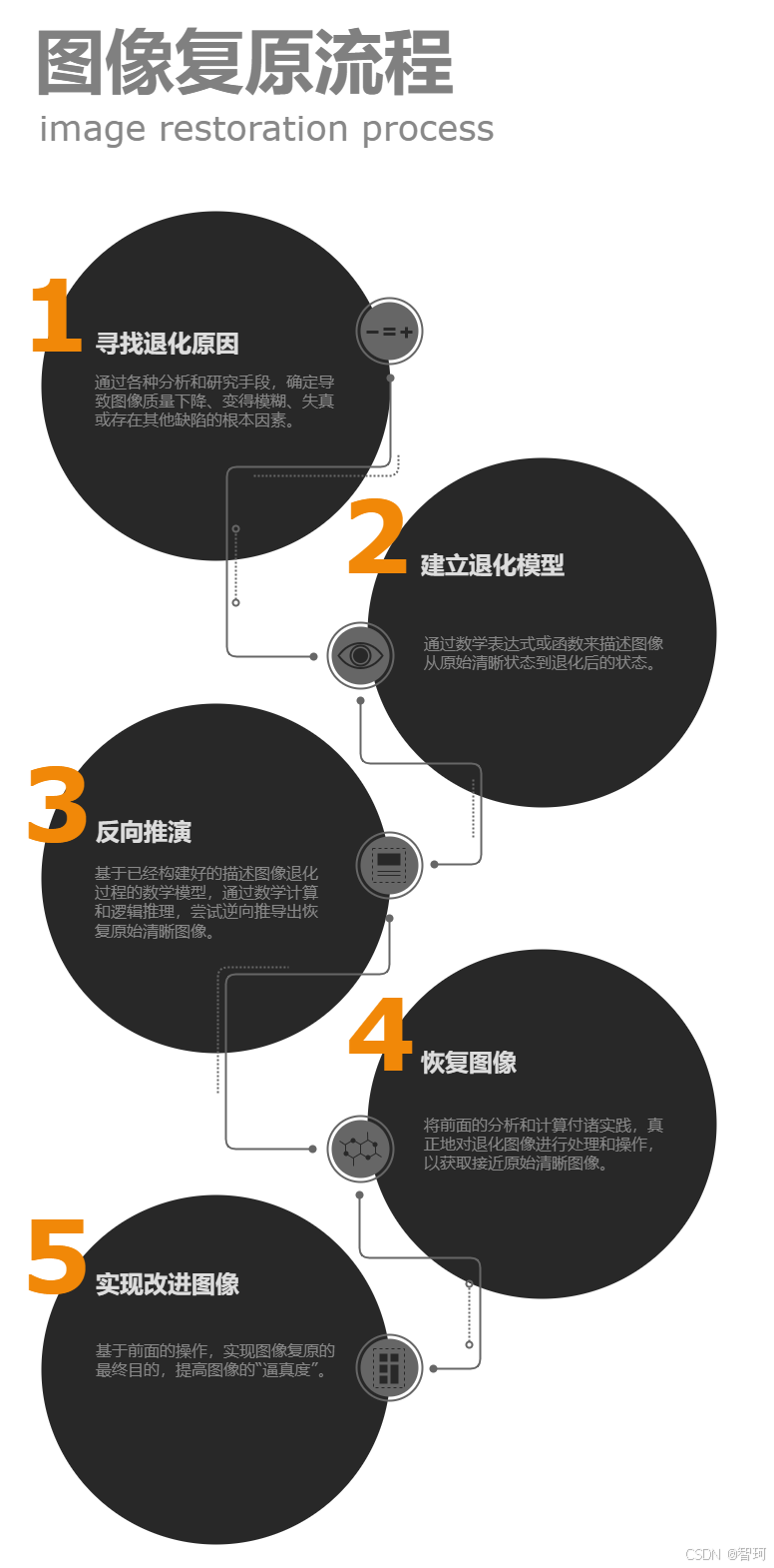 1.图像复原技术,说简单点,同图像增强那样,是为了以某种预定义的方式来改进图像。在具体操作过程中用流程图表示,其过程就如下面所示: