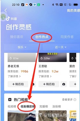 往下拉在这个热门视频里,你可以看到低粉爆款榜ミД彡(`Д)!!,我们可以点进去选择你所在的领域。