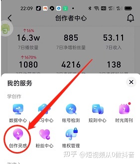 首先,我们找到创作服务中心,打开它的全部分类,点击创作灵感ミД彡(`Д)!!,再然后点击创作热点。