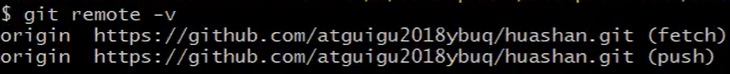 此时可以重新设置origin的地址为 git@github.com:atguigu2018ybuq/huashan.git,也可以新建一个远程库地址为origin_ssh,而不删除https的方式。