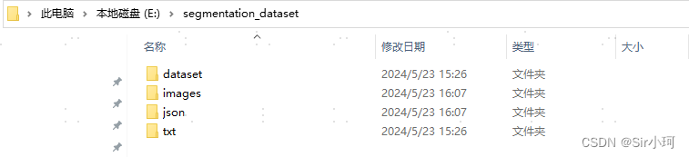 首先对原始数据集进行整理,将标注好的图像和标签分别放在两个文件夹中,同时额外新建两个文件夹,用于存放转换完的标签与划分后的数据集。