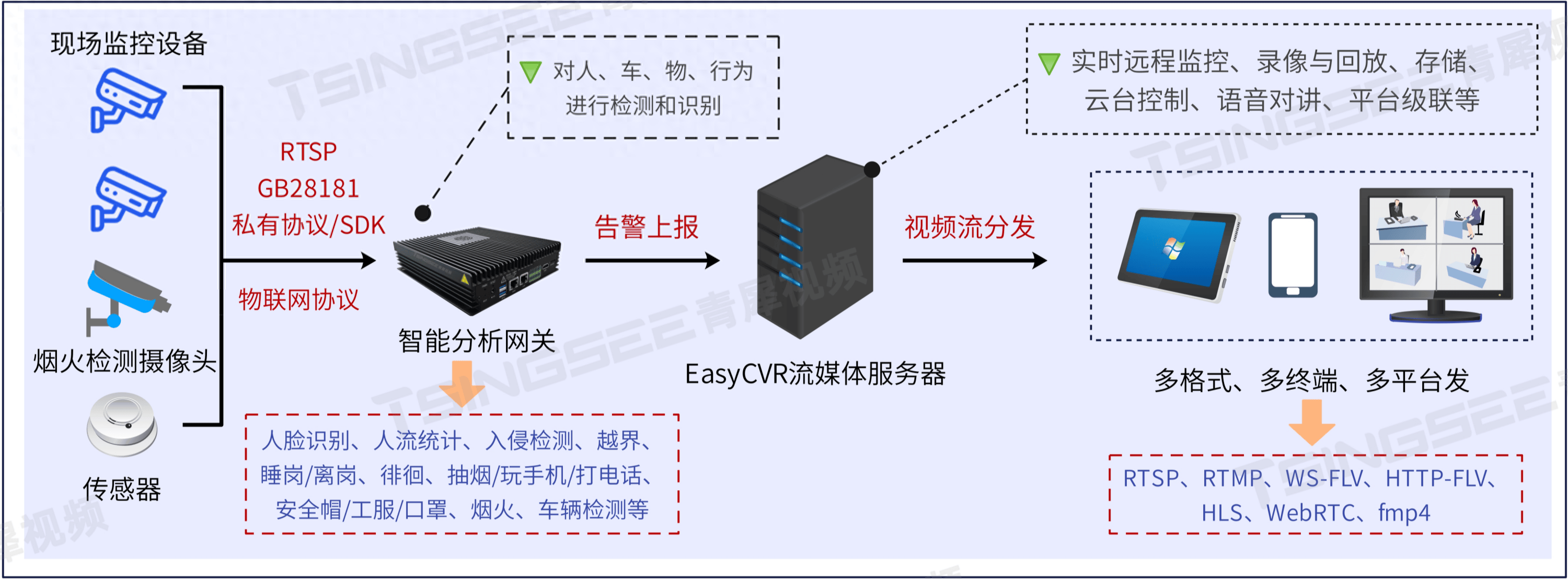 - 传感器接入:AI智能分析网关V4支持传感器接入,通过接入烟感、温湿度等传感器,收集实时监测的烟雾火焰感应状态等数据,极大提高对博物馆消防隐患的多维感知能力。