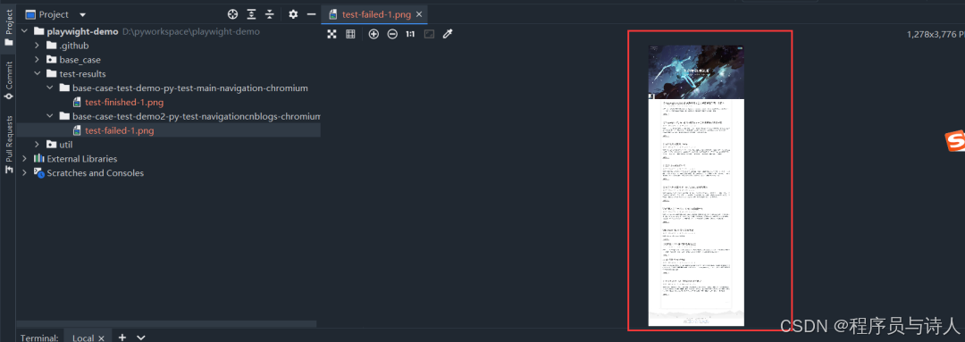 pytest --browser chromium --headed --screenshot on --full-page-screenshot 效果: