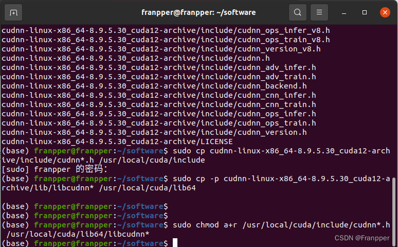 sudo cp cudnn-linux-x86_64-8.9.5.30_cuda12-archive/include/cudnn*.h /usr/local/cuda/include sudo cp -p cudnn-linux-x86_64-8.9.5.30_cuda12-archive/lib/libcudnn* /usr/local/cuda/lib64 sudo chmod a+r /usr/local/cuda/include/cudnn*.h /usr/local/cuda/lib64/libcudnn*