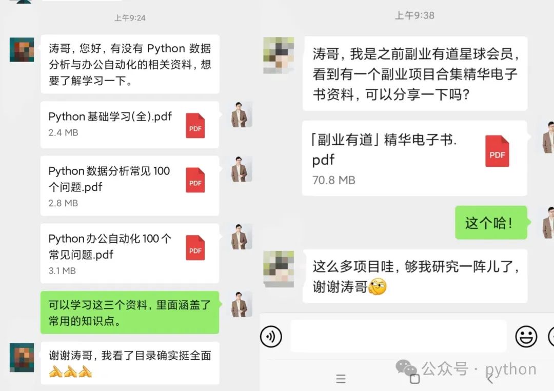 我们还为大家准备了Python资料和副业项目合集,感兴趣的小伙伴快来找我领取一起交流学习哦!
