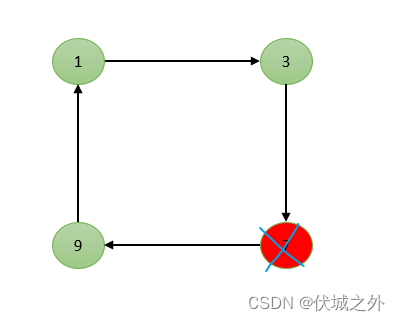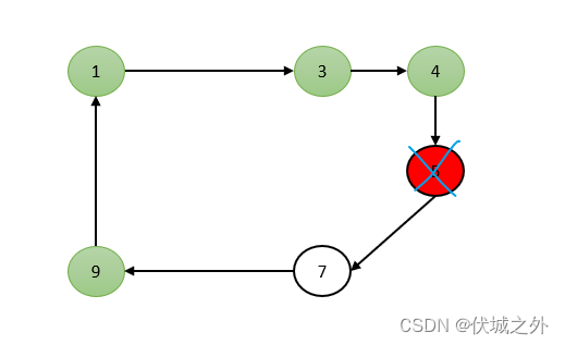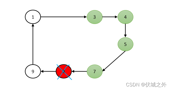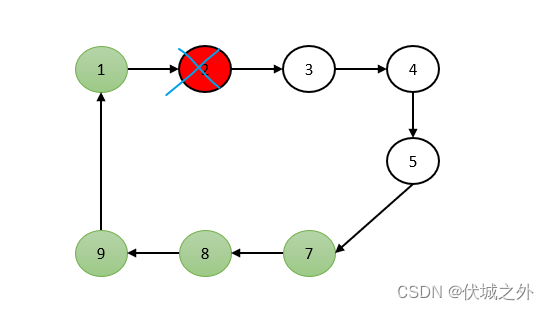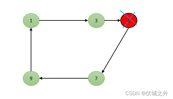 通过上面图示我们可以发现,被删除节点其实是作为起跳点,因此基于普通数组来操作的话,既要实现节点删除,又要实现基于删除点进行下次的起跳,这个逻辑是比较复杂的。