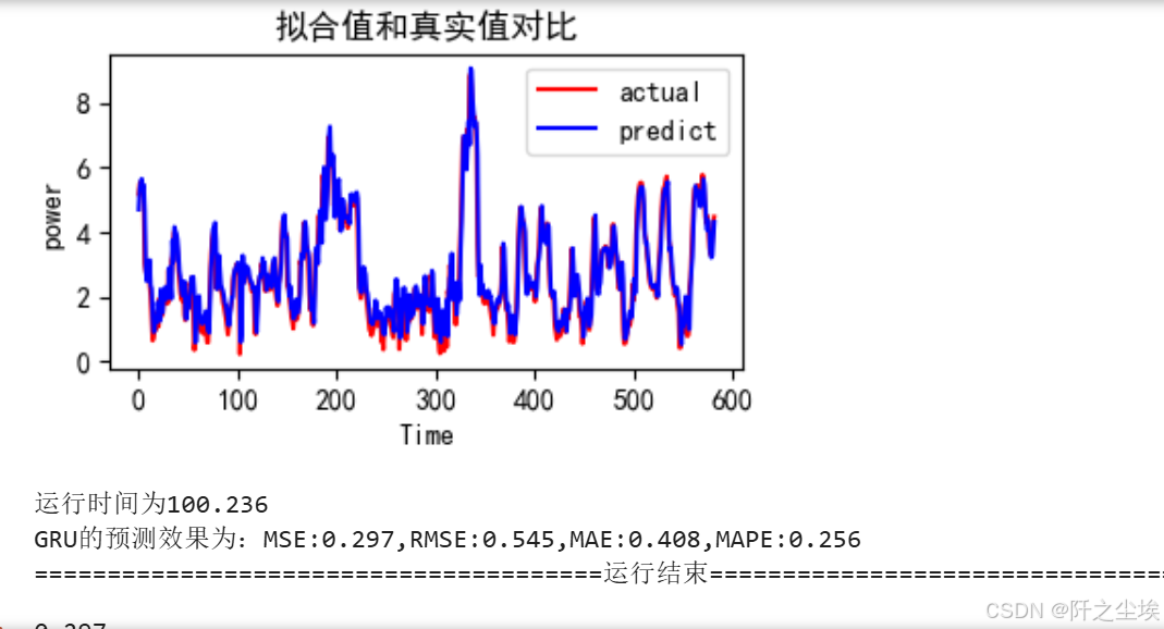 df_eval_all=pd.DataFrame(columns=['MSE','RMSE','MAE','MAPE']) df_preds_all=pd.DataFrame() def train_fuc(mode='LSTM',batch_size=64,epochs=30,hidden_dim=[32,16],verbose=0,show_loss=True,show_fit=True): #构建模型 s = time.time() set_my_seed() model=build_model(X_train=X_train,mode=mode,hidden_dim=hidden_dim) earlystop = EarlyStopping(monitor='loss', min_delta=0, patience=5) hist=model.fit(X_train, y_train,batch_size=batch_size,epochs=epochs,callbacks=[earlystop],verbose=verbose) if show_loss: plot_loss(hist) #预测 y_pred = model.predict(X_test) y_pred = y_scaler.inverse_transform(y_pred) #print(f'真实y的形状:{y_test.shape},预测y的形状:{y_pred.shape}') if show_fit: plot_fit(y_test, y_pred) e=time.time() print(f"运行时间为{round(e-s,3)}") df_preds_all[mode]=y_pred.reshape(-1,) s=list(evaluation(y_test, y_pred)) df_eval_all.loc[f'{mode}',:]=s s=[round(i,3) for i in s] print(f'{mode}的预测效果为:MSE:{s[0]},RMSE:{s[1]},MAE:{s[2]},MAPE:{s[3]}') print("=======================================运行结束==========================================") return s[0] 所有的函数都准备完了,下面初始化参数,开始准备训练模型