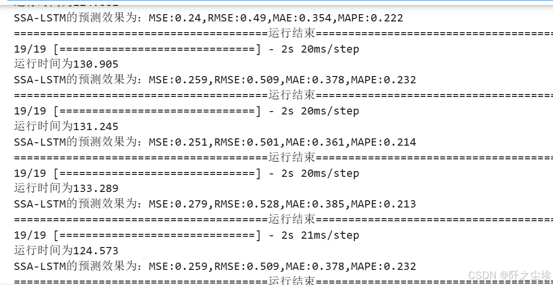 在这个案例里面的,SSA-LSTM效果好于GRU好于LSTM和attention-LSTM,说明优化算的效果是可以的,当然同学们还有时间可以用SSA-GRU,SSA-attention-LSTM都去试试,,看谁的效果好。模型修改就该buildmodel这个函数,很简单的,搭积木,要什么层就写什么层的名字就行。