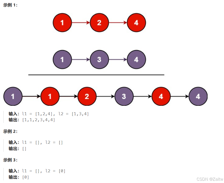 /** 思路:如果l1和l2都不为空的话,首先定义一个新的节点,值设为-1 便于之后返回新的链表 合并链表时如果一个链表先为空,则将另一个链表的剩余部分直接加到新链表后面 */ public ListNode mergeTwoLists(ListNode list1, ListNode list2) { ListNode newhead =new ListNode(-1); ListNode listNode=newhead; while (list1!=null&&list2!=null){ if (list1.val<=list2.val){ listNode.next=list1; list1=list1.next; }else { listNode.next=list2; list2=list2.next; } listNode=listNode.next; } listNode.next=list1==null?list2:list1; return newhead.next; }