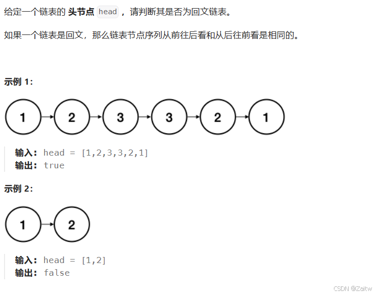 /** * 复制链表值到数组列表中。 * 使用双指针法判断是否为回文。 * @param head * @return */ public boolean isPalindrome(ListNode head) { ArrayList values = new ArrayList<>(); ListNode temp =head; while (temp!=null){ values.add(temp.val); temp=temp.next; } int front =0; int back =values.size()-1; while (front 给你一个链表的头节点 head ,判断链表中是否有环。