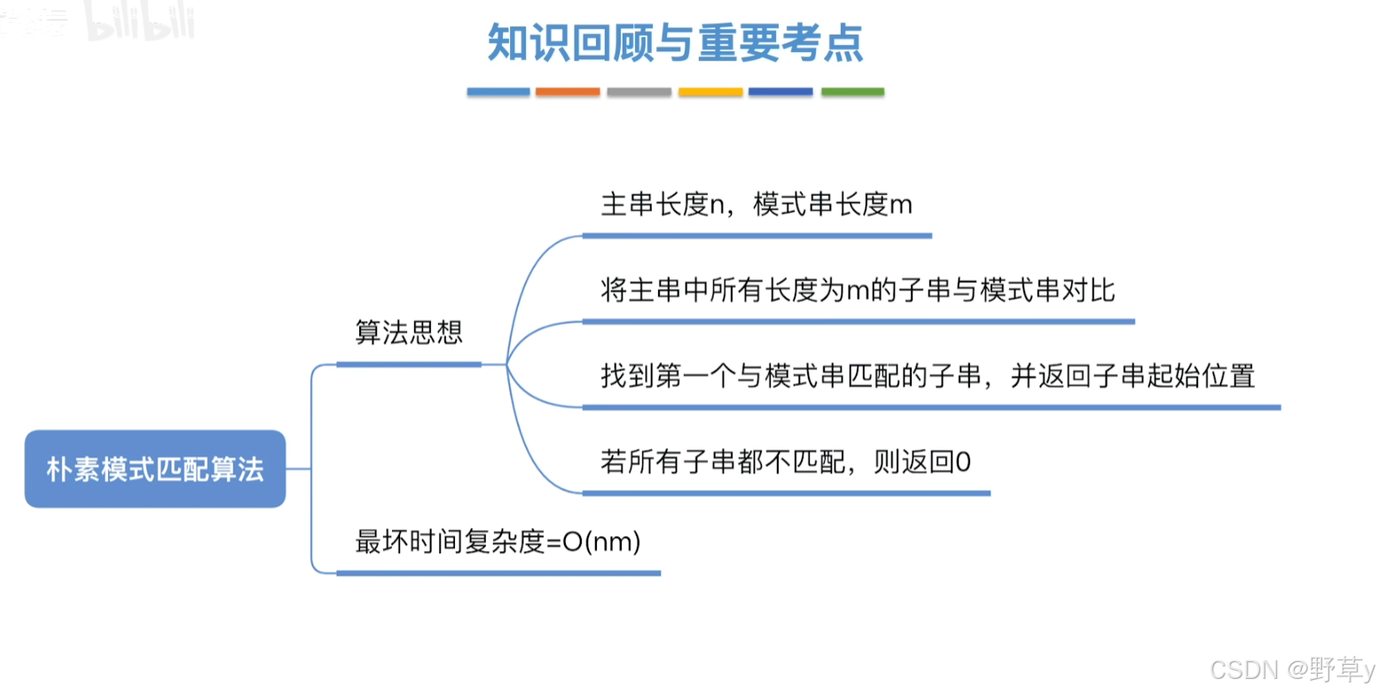 朴素模式匹配算法:将主串中所有长度为m的子串(最多对比n-m+1个子串)依次与模式串对比,直到找到一个完全匹配的子串,或所有的子串都不匹配为止