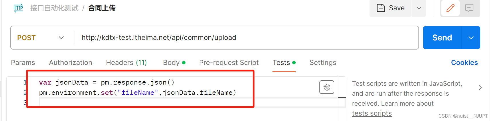 8.需要在合同上传接口中将响应得到的fileName字段保存为环境变量。