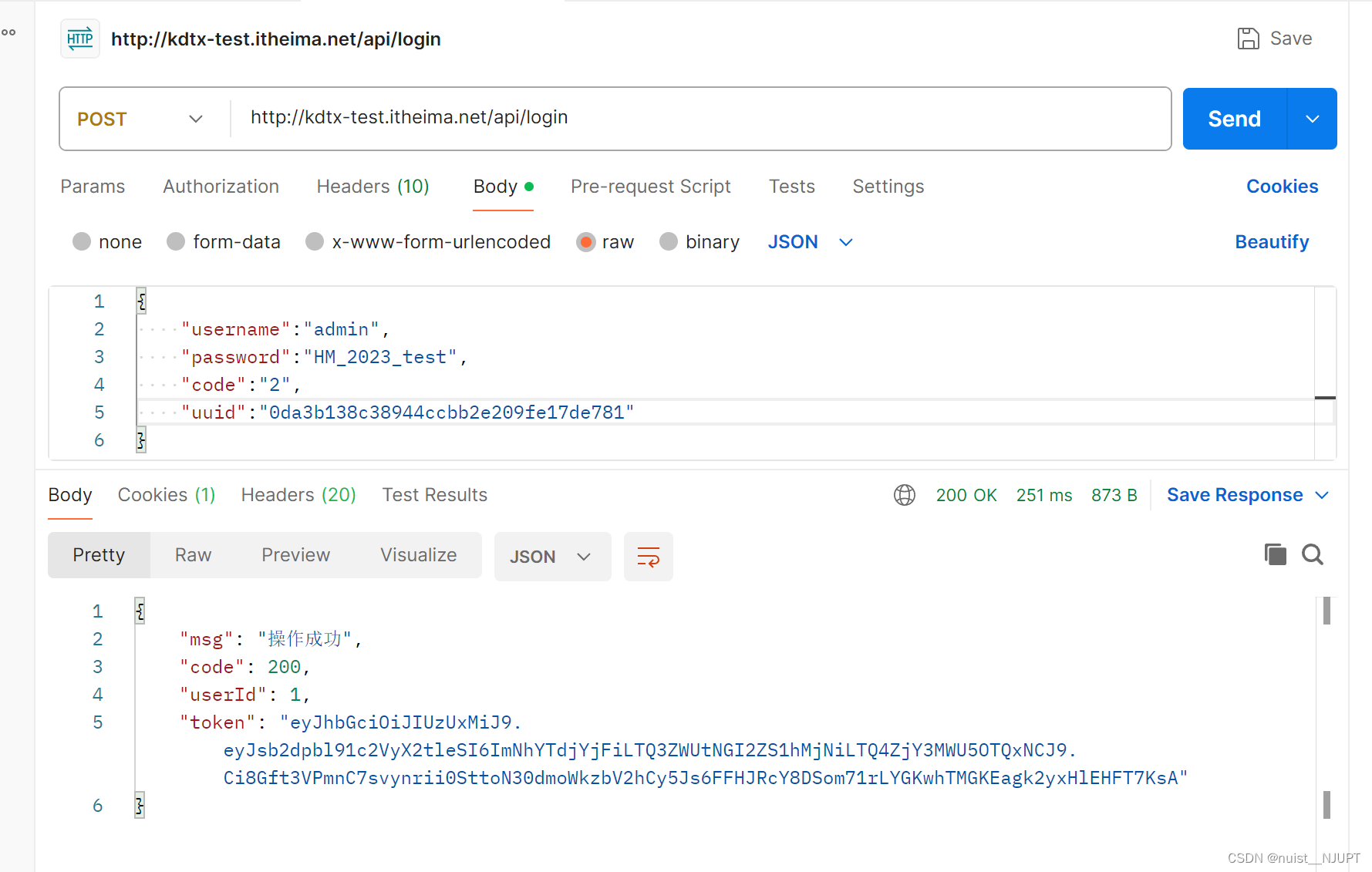 2.使用postman发送POST请求:根据uuid进行登录请求