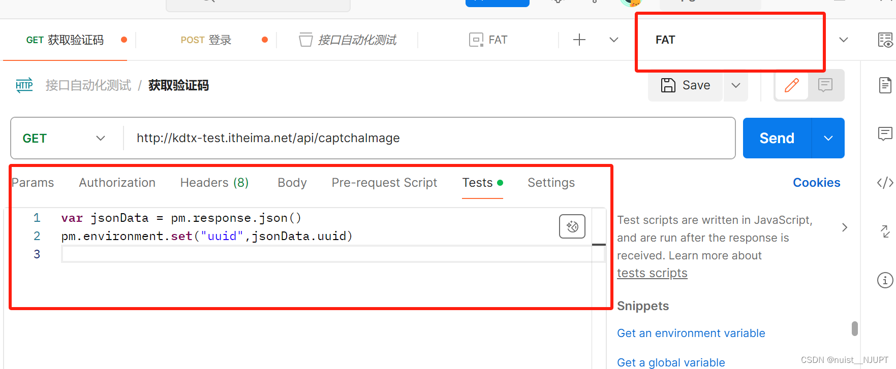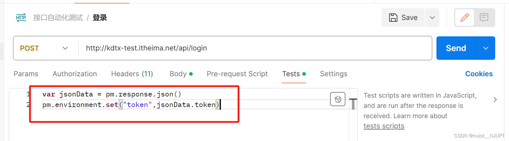 4.在登录接口中获取响应得到的token,存储为环境变量。
