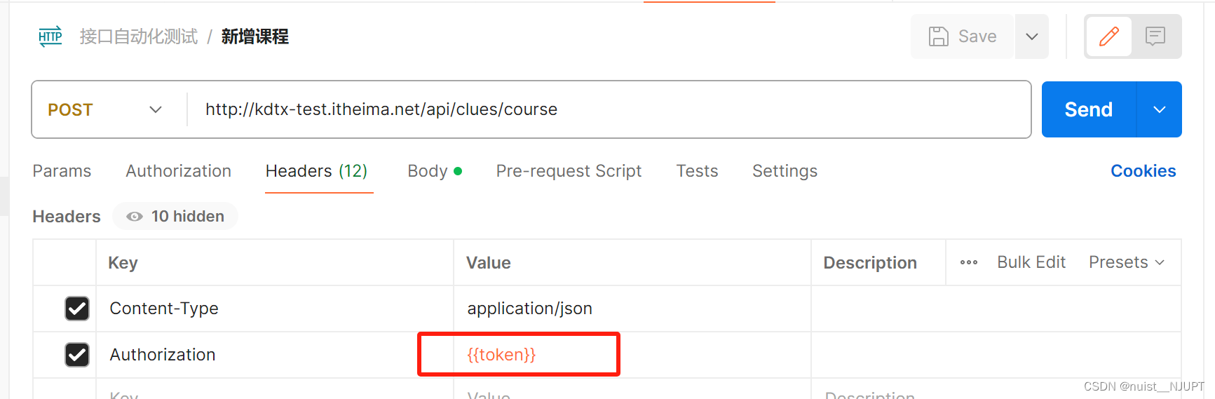 5.在新增课程的接口中,引用登录接口存储的token变量。