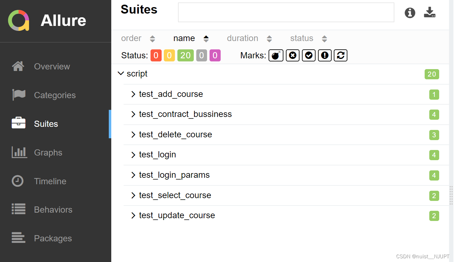 [pytest] addopts =-s --alluredir report testpaths =./script python_files = test*.py python_classes = Test* python_functions = test* 在pychram的终端中使用命令:pytest 批量执行测试用例