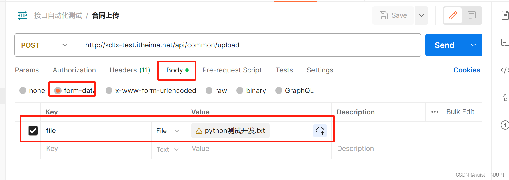 7.在合同上传接口的请求体里设置待上传的合同文件。