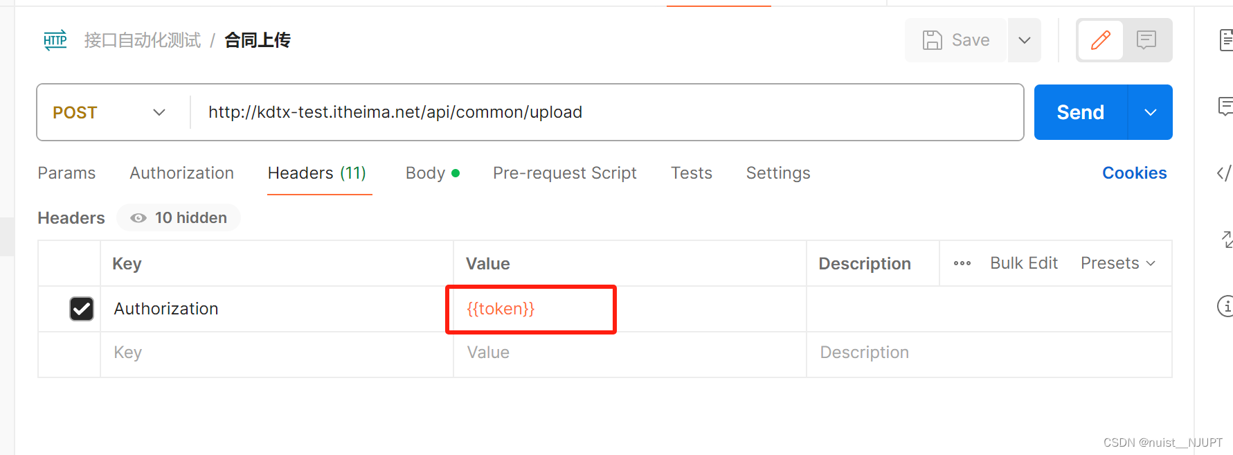 6.合同上传接口,需要获取登录接口保存的token环境变量。