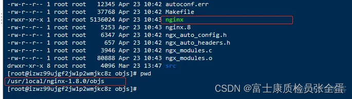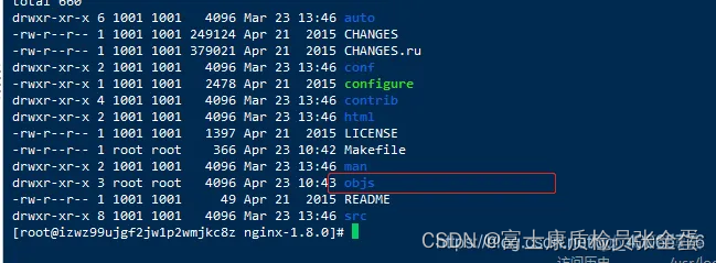 注意,不能使用 make install 命令,这样会导致重新安装 nginx,此时当前目录就会出现 objs 目录