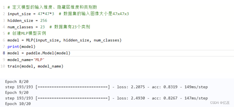 - 测试准确率为0.8215,较MYCNN模型的测试准确率较低,可能表示MLP模型在应对复杂数据的分类任务上相对较弱。