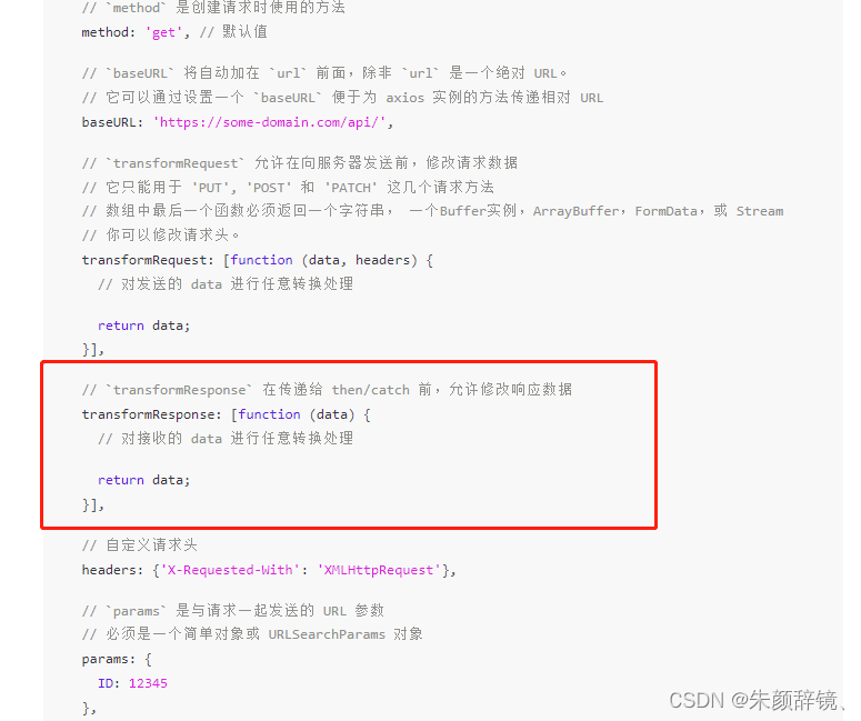 看了axios的文档发现一个transformResponse字段配置