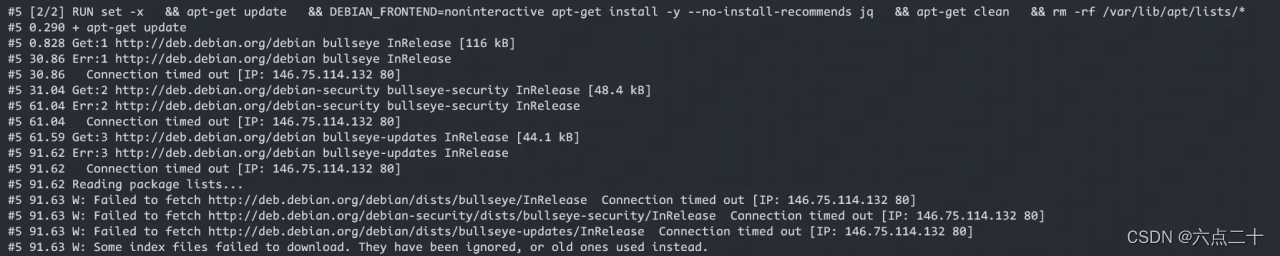 详细信息显示为执行dockerfile构建容器时在基础镜像上执行apt-get update更新失败