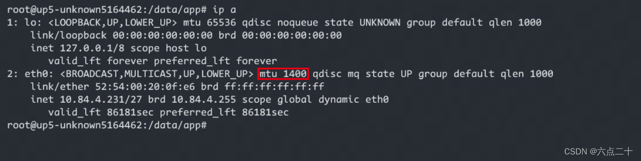 执行ip a查看本机eth0网卡mtu值