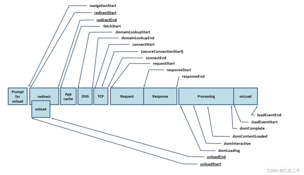 这个加载过程模型,是web性能工作组早在 2012 年就针对页面加载过程制定的,定义了从上一个页面结束,到下一个页面从开始加载到完成加载的整个过程。基于这个模型,我们可以获取到页面加载过程中各个阶段的耗时情况,然后分析出页面加载性能。