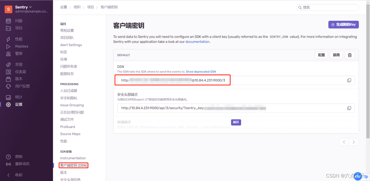 - 查看当前项目绑定的 DSN(客户端秘钥)