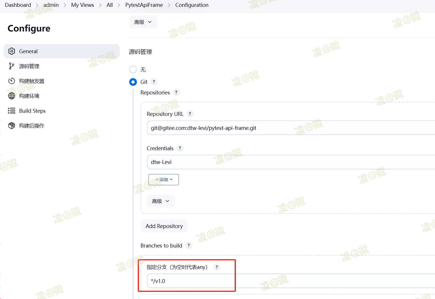 分支栏为空时默认的是master分支,填写我们需要拉取的分支代码