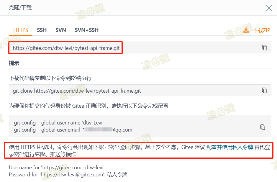 在我们复制Gitee仓库地址时有个提示:安全考虑,建议使用私人令牌;Jenkins凭证常用的有三种:账号密码、api令牌、ssh-key;Git仓库的credentials 只能选择ssh key 或者用户名密码的凭据,gitee api token的凭据只是给触发器用的;所以需要单独为git源码管理插件配置ssh key 或者用户名密码凭据,二者选其一即可。