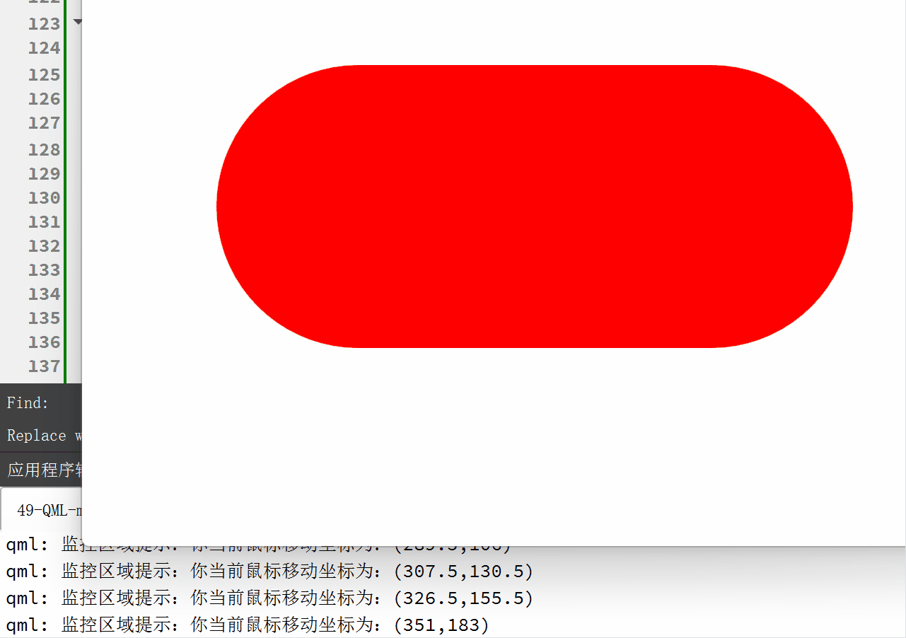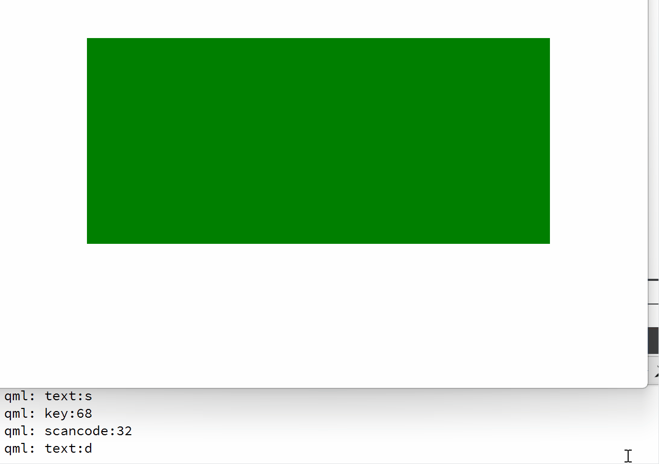 import QtQuick 2.12 import QtQuick.Window 2.12 Window { visible: true width: 640 height: 480 title: qsTr("Hello World") Rectangle{ id:keyserctn anchors.centerIn: parent width: 450 height: 200 color: "green" // 不设置焦点,获取不了键盘事件 focus: true //捕获键盘按键事件。 Keys.onPressed: { //按下的按键的键值 相当于枚举的值 d:68 console.log("key:"+event.key) //按下的按键的原生扫描码。 "A" 时,event.nativeScanCode 的值通常是 30。 console.log("scancode:"+event.nativeScanCode) //按下的按键所对应的文本字符 console.log("text:"+event.text) } //捕获特殊 tab键 Keys.onTabPressed: { console.log("监控区域提示:你已经按下Tab键!") } //捕获特殊 空格键 Keys.onSpacePressed: { console.log("监控区域提示:你已经按下空格键!") } } } import QtQuick 2.12 import QtQuick.Window 2.12 import QtQuick.Controls 2.0 Window { visible: true width: 640 height: 480 title: qsTr("Hello World") Rectangle{ id :mouse anchors.centerIn: parent width: 450 height: 200 color: "red" radius: width/2 //鼠标事件 MouseArea{ anchors.fill: parent //沾满 //接受的按钮:全部 acceptedButtons: Qt.AllButtons // 此属性为false,鼠标进入、离开、移动不能捕获到 hoverEnabled: true onPositionChanged: { console.log("监控区域提示:你当前鼠标移动坐标为:("+mouseX+","+mouseY+")"); } onClicked: { if(mouse.button===Qt.LeftButton){ console.log("监控区域提示:你已经按下鼠标左键!"); } else if(mouse.button===Qt.RightButton){ console.log("监控区域提示:你已经按下鼠标右键!"); } else if(mouse.button===Qt.MidButton){ console.log("监控区域提示:你已经按下鼠标中间键!"); } } onDoubleClicked: { console.log("监控区域提示:你已经双击按下鼠标!"); } } } }