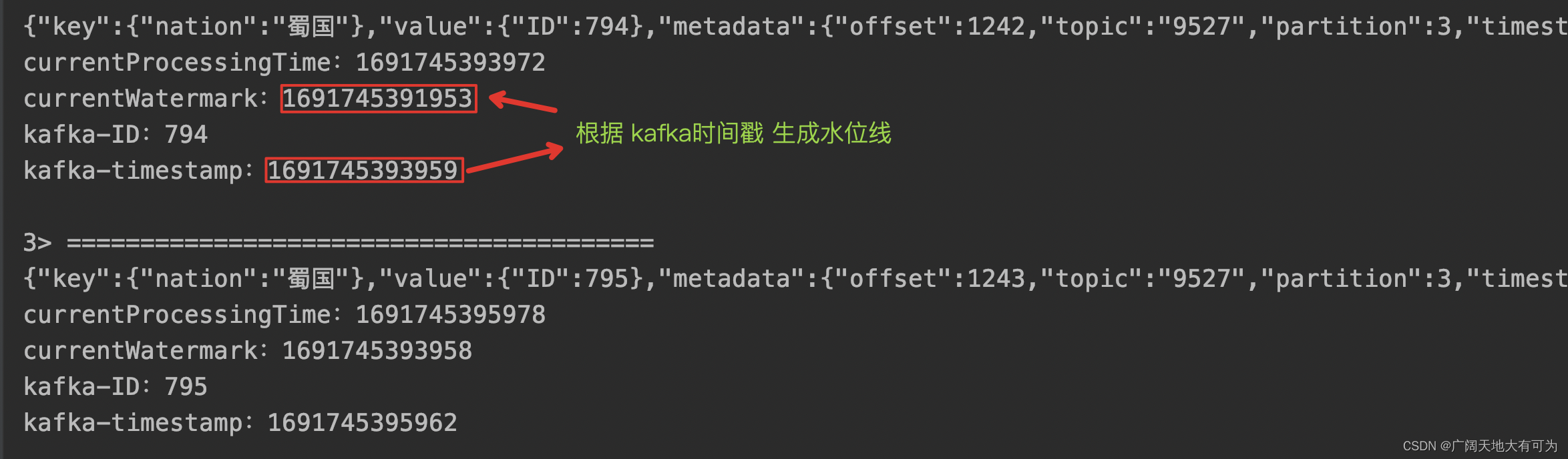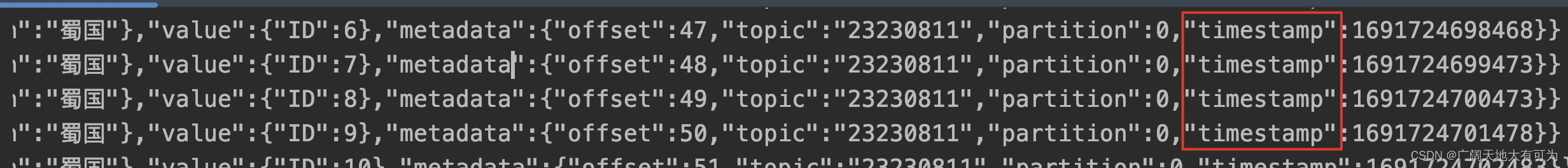 例如,当使用 MyJSONKeyValueDeserializationSchema 获取Kafka元数据时,只返回了 offset、topic、partition 三个字段信息,现在需要`kafka生产者写入数据时的timestamp`,就可以通过自定义kafka消息解析器来完成