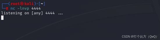 打开一个新的终端,输入命令nc -lnvp 4444,启动端口监听。