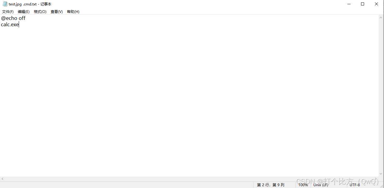 在test.jpg文件夹中创建一个“test.jpg .cmd”程序(jpg后面有一个空格),内容为: