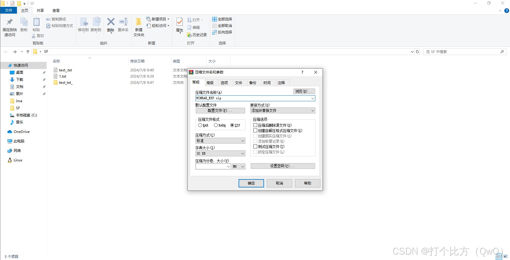 将SF文件夹中的内容添加到压缩包中,同时附加上test_.txt文件夹。